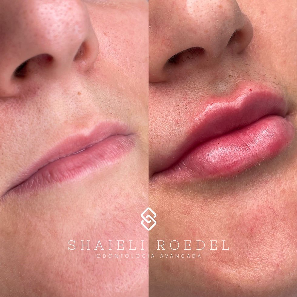 Preenchimento labial e de mento para realçar a beleza natural com resultados harmoniosos.